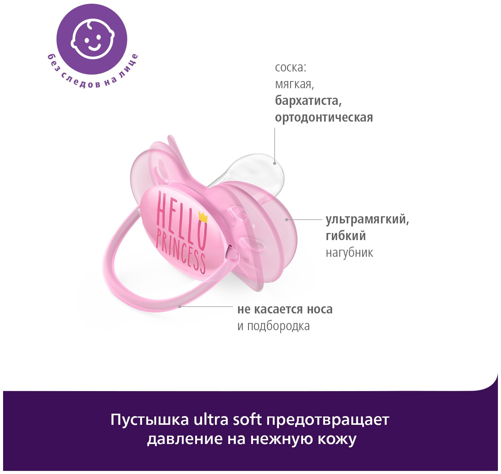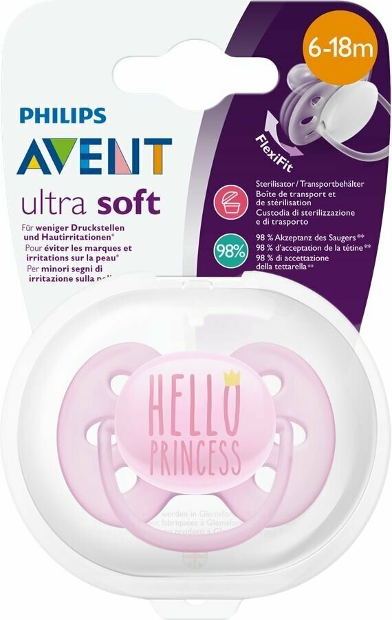 Avent Пустышка силиконовая Ultra Soft Hello princess для девочки 6-18мес 1шт