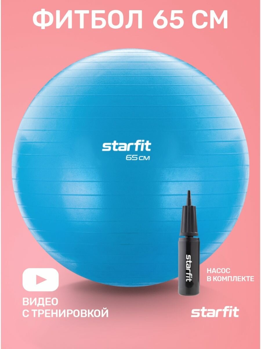 Фитбол STARFIT GB-109 65 см, 1000 гр, антивзрыв, с ручным насосом, синий