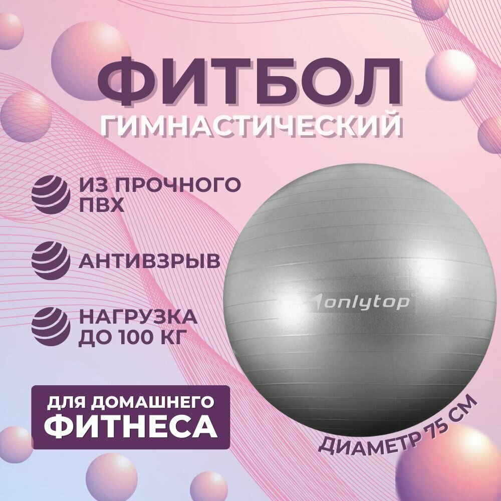 Фитбол ONLYTOP, диаметр 75 см, вес 1000 г, антивзрыв, цвет серый