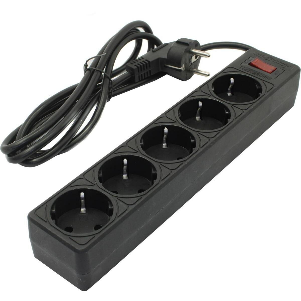 Удлинитель с функцией сетевого фильтра, 10А, 2 200 Вт, 5 розеток, длина 1,8 м, черный, Smartbuy