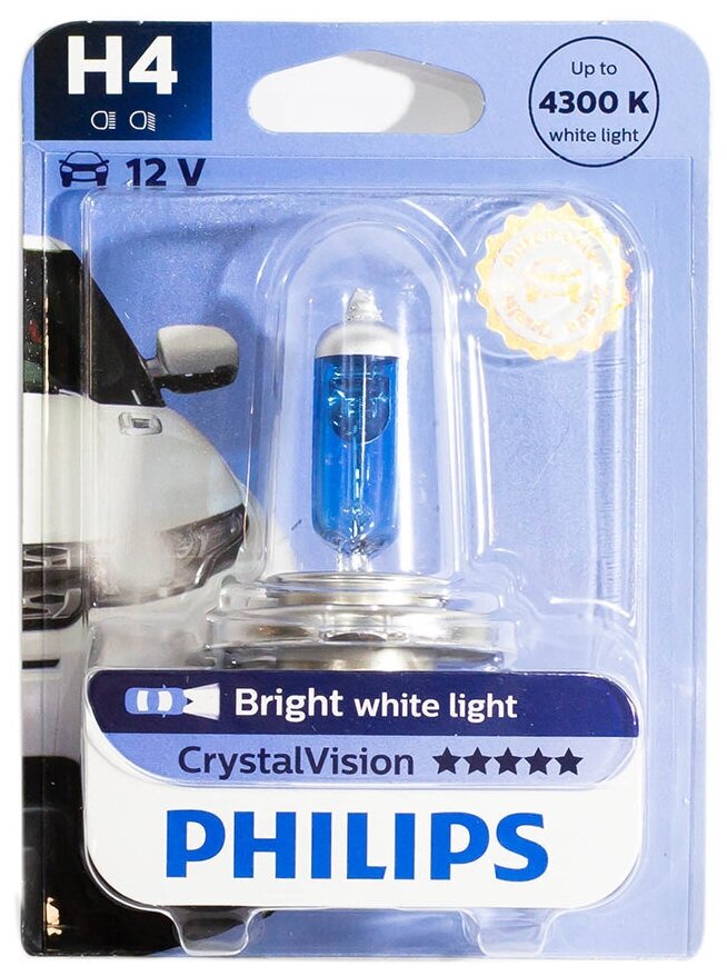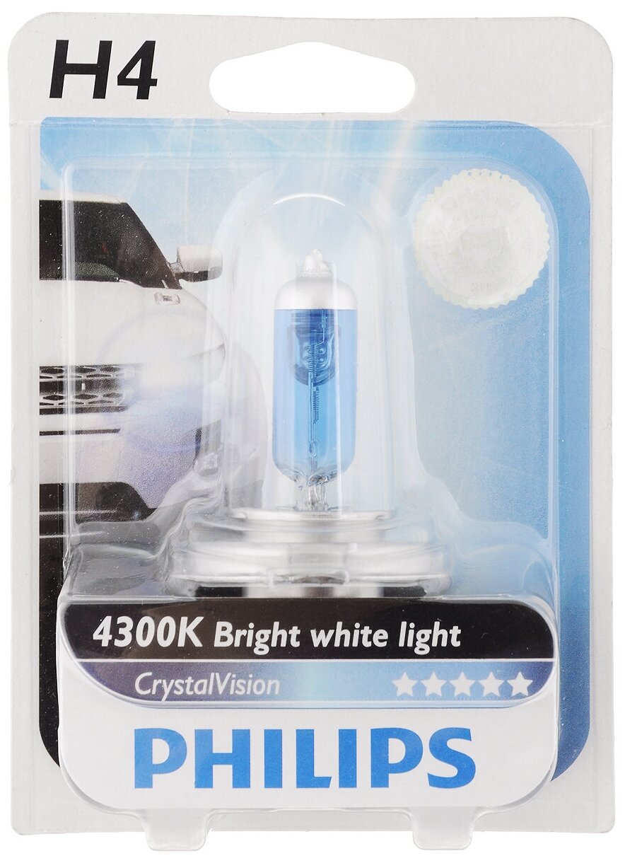 Лампа H4 12v (55w) Crystal Vision, 1шт. Блистер [4300k] Philips арт. 12342CVB1