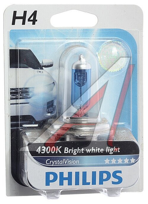 PHILIPS Лампа головного света (CrystalVision) H4 12V 55/60W 4300K Блистер 1шт. 12342CVB1