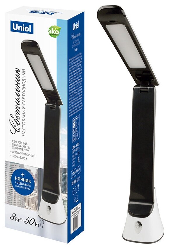 СохранитьТипы/Настольные лампы/Офисные Uniel TLD-564 White-Black/LED/500Lm/3000-6000K/Dimmer/NightLight Светильник настольный с ночником, 8W. Сенсорный выключатель. Диммер. Белый с черным. ТМ Uniel интересное: