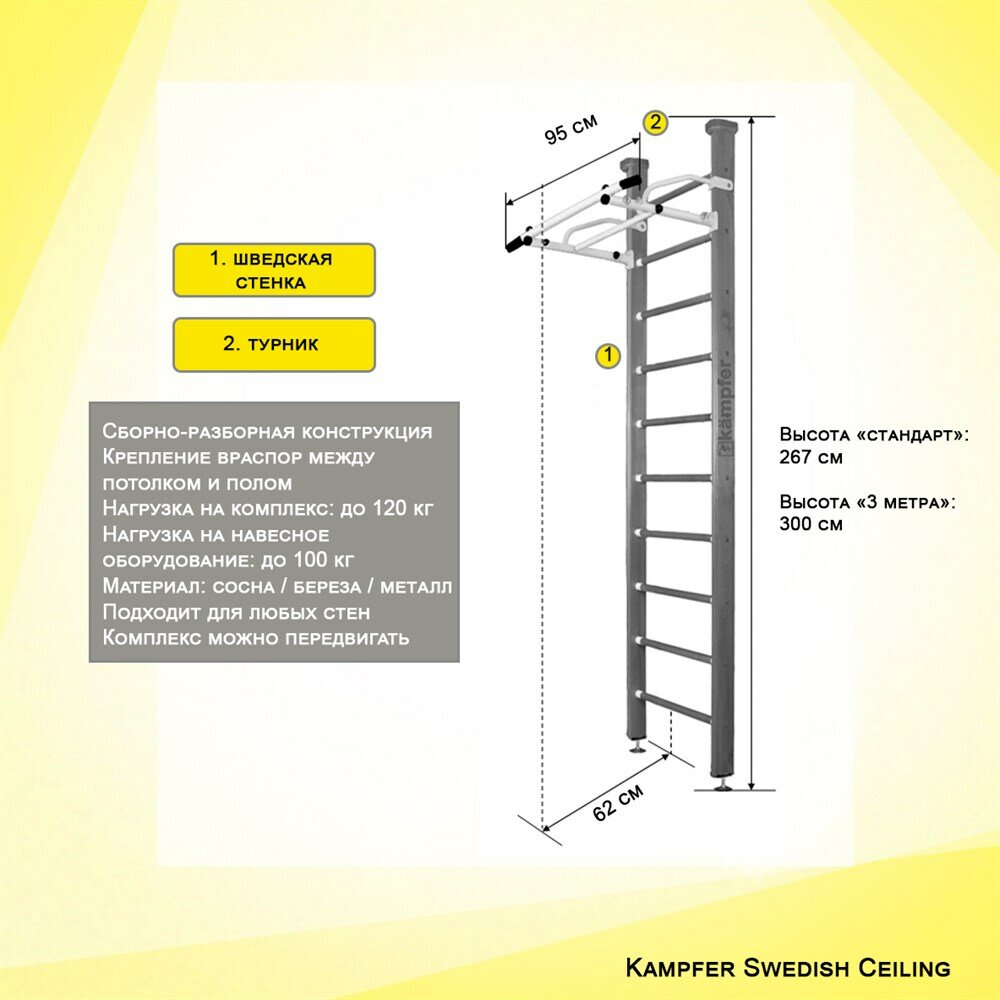 Шведская стенка Kampfer Union Ceiling (№1 Натуральный Стандарт белый турник)