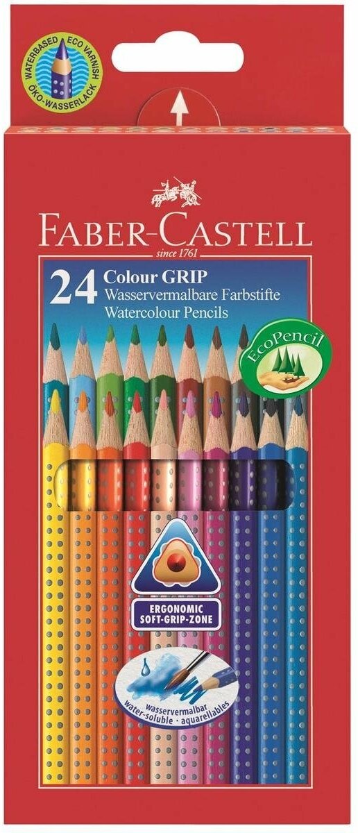 Карандаши цветные Faber-Castell "Grip", 24цв., трехгран., заточен., картон, европодвес