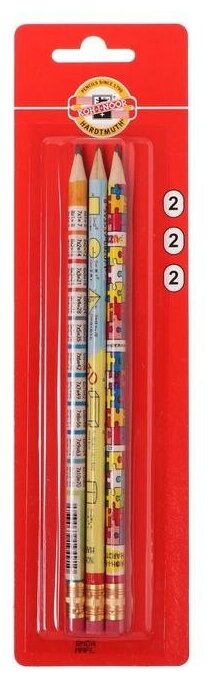 Koh-I-Noor Набор карандашей чернографитных 3 штуки Koh-I-Noor MIX 1231 HB, с ластиком, блистер интересное: