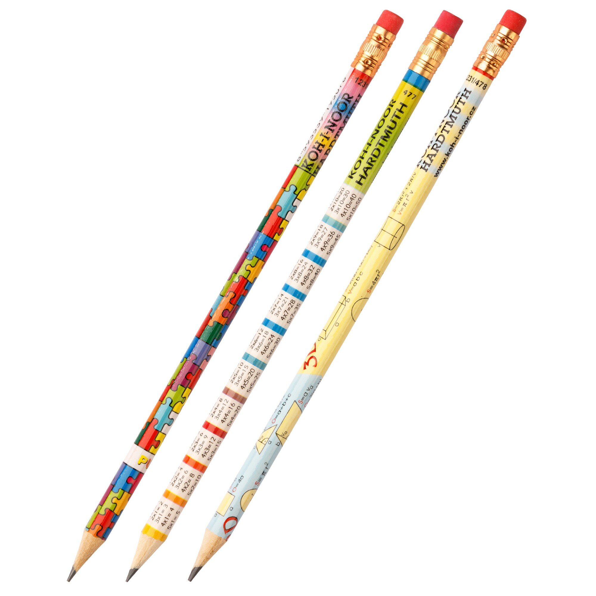 Набор карандашей чернографитных 3 штуки Koh-I-Noor MIх 1231 HB, с ластиком, блистер