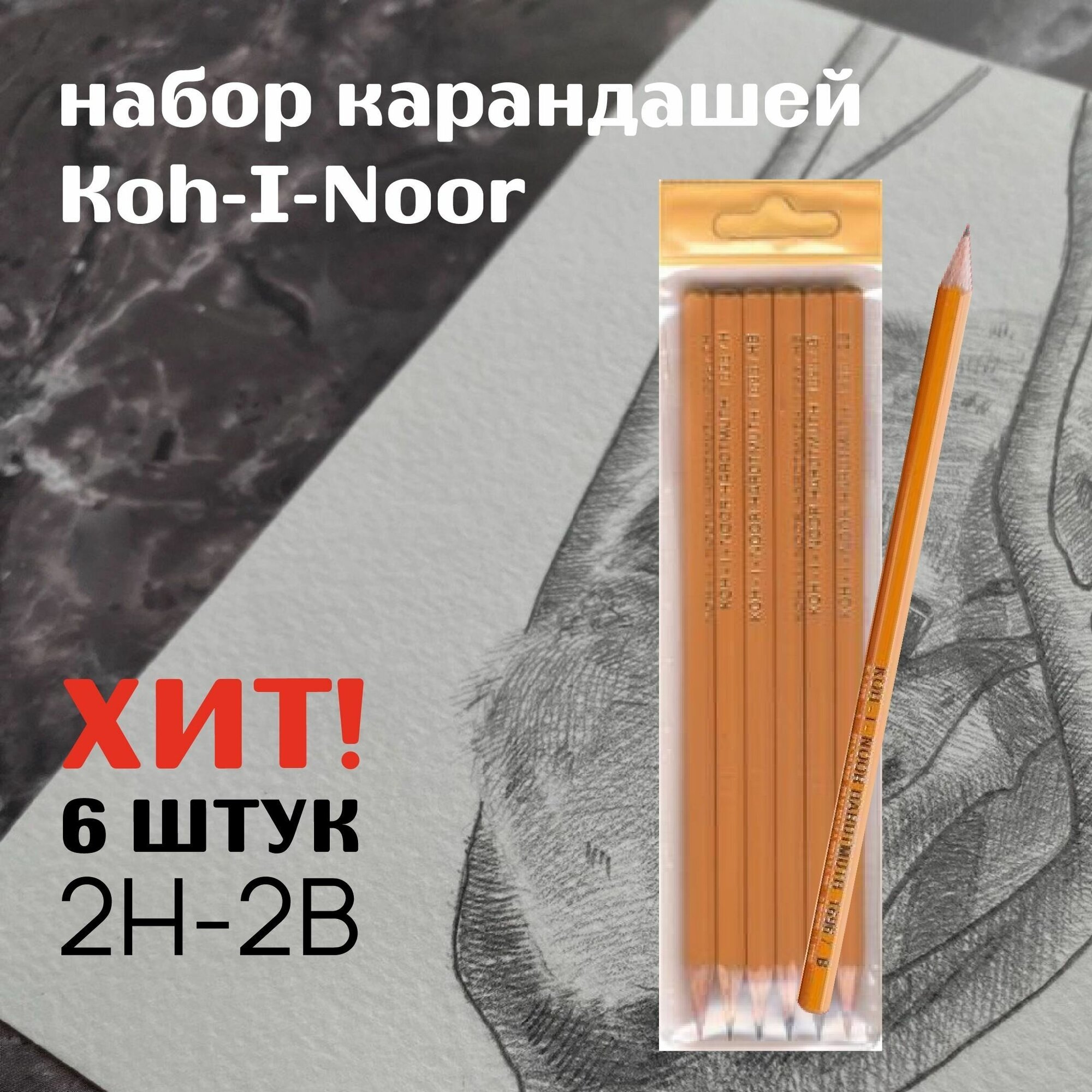 Чернографитовые карандаши KOH-I-NOOR Набор карандашей чернографитных (2Н-2В) KOH-I-NOOR, 6шт.