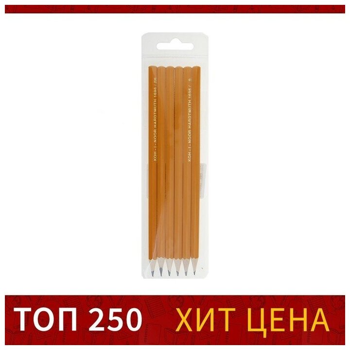 Карандаши чернографитные KOH-I-NOOR, набор 6 шт., 2Н, Н, НВ-2, В, 2В, пластиковая упаковка, европодвес, 1696006041TE