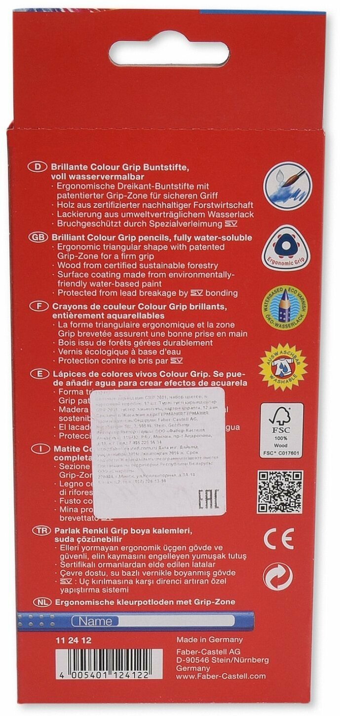 Карандаши цветные Faber-Castell "Grip", 12цв., трехгран., заточен., картон, европодвес