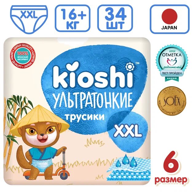 Подгузники-трусики KIOSHI , Ультратонкие, XXL 16+ кг, 34 шт