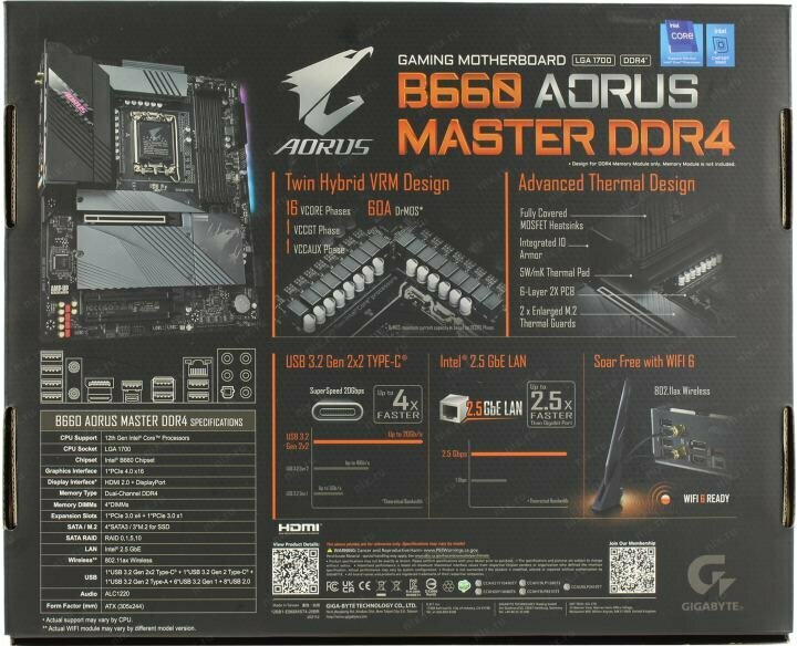 Материнская плата GIGABYTE B660 AORUS MASTER DDR4, LGA 1700, Intel B660, ATX, Ret