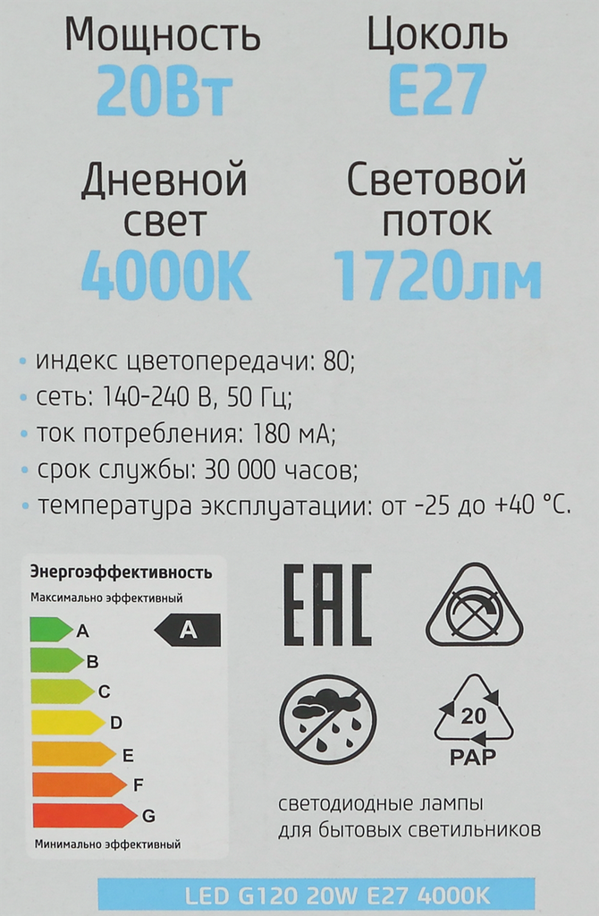 Светодиодная лампа фотон LED G120 20W E27 4000K 23953 интересное:
