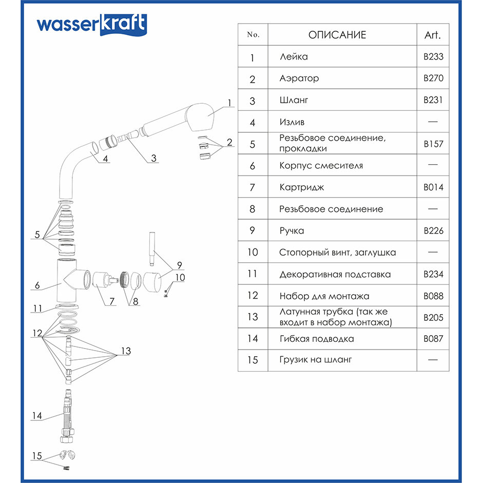 Смеситель для кухонной мойки Wasserkraft Wern (4266)