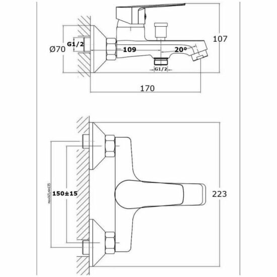 | Минусы: | Картинка на многих сайтах и описание не соответствуют действительности. Переключатель на душ обычная кнопка, а не рычаг. Там внутри есть заслонка, кнопку нужно вытянуть и повернуть, чтобы зафиксировать поток воды на душ. Так говорят продавцы, в инструкции производитель заявляет совсем другое . Я специально уточняла этот момент, мне был важен рычаг, и мне его обещали. Но по факту его нет. Переключение на душ неудобное, при малом напоре его выбивает обратно. Смеситель довольно шумный, хотя производитель обещает обратное. Розетки очень маленькие, на длинные трубы, торчащие из стены не подойдут. |