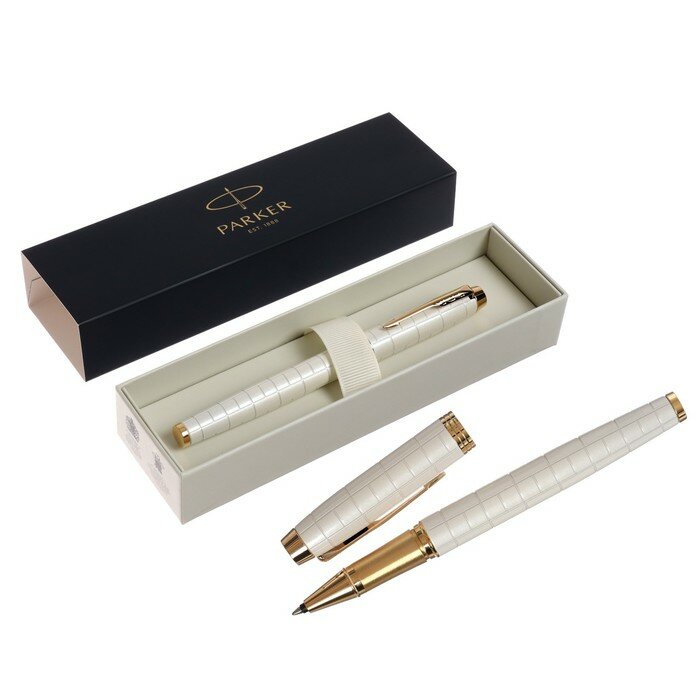 Ручка-роллер PARKER "IM Premium Pearl GT", корпус жемчужный лак, позолоченные детали, черная