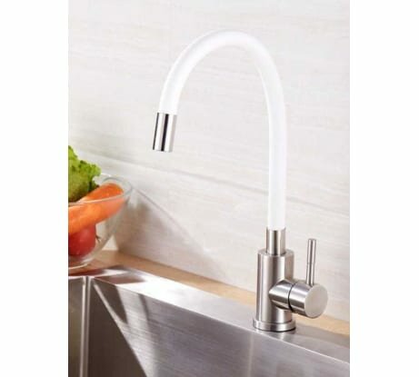 Смеситель для кухни/ мойки/ с гибким силиконовым изливом/ кран для кухни Solone EZA4-F090, белый