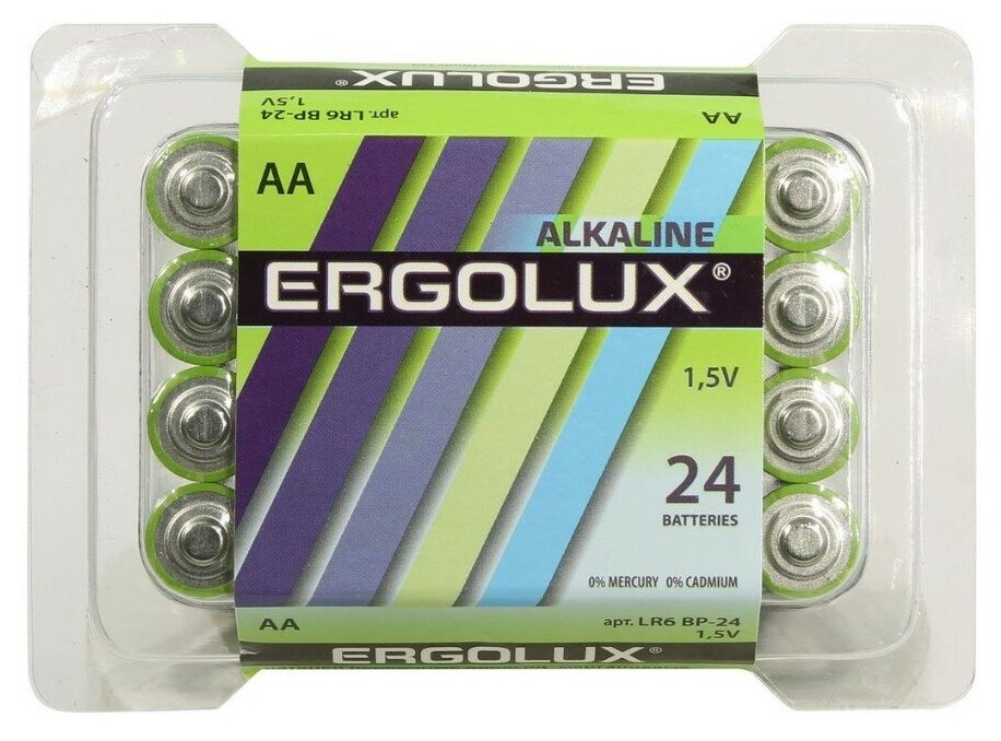 Батарейка Ergolux LR6 BP-24 Alkaline LR6/AA, 1,5 В, 2700 мА.ч, 24 шт в упаковке (14212)