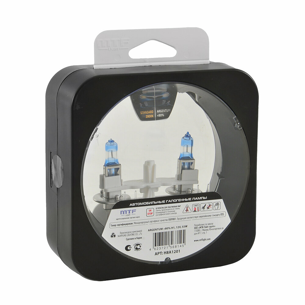 Лампы галогенные MTFLIGHT ARGENTUM +80% 12V H1 55W 2 шт H8A1201