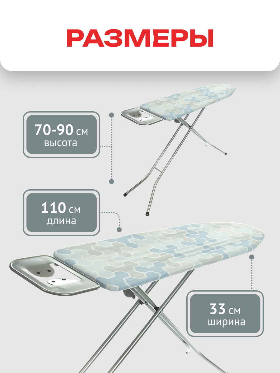 | Размеры гладильной поверхности (ДхШ) | 110 x 33 см |