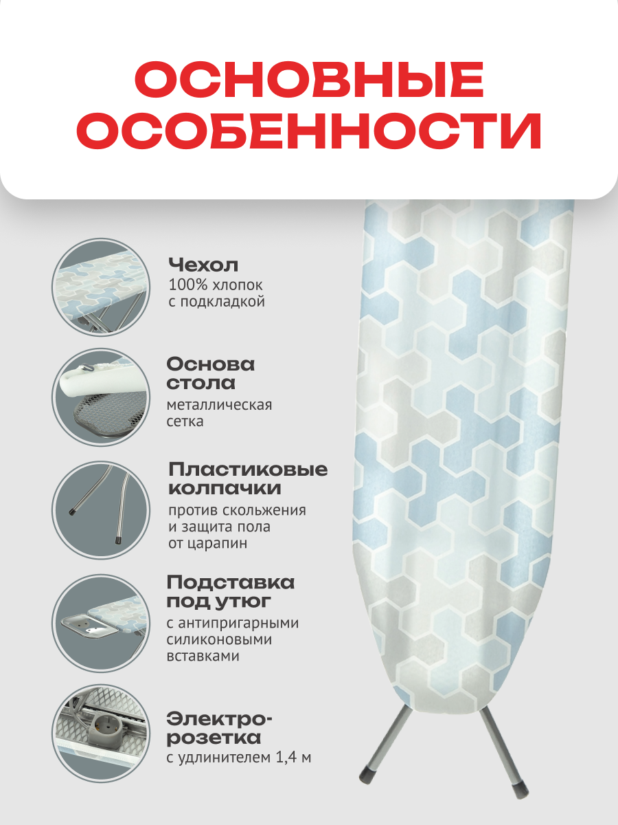 | Комплектация | встроенная розетка для утюга / подставка для утюга / удлинитель |