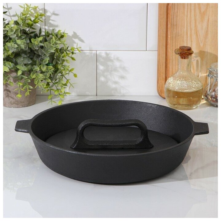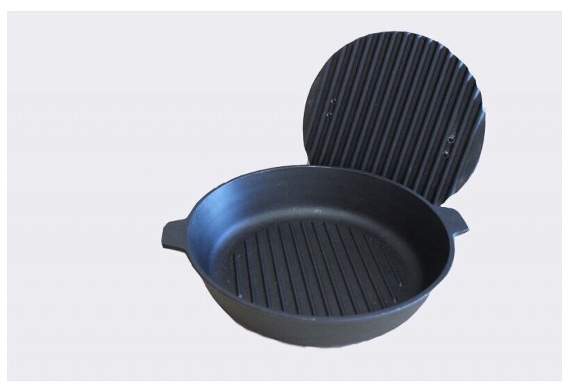 Сковорода-гриль Камская посуда литая, 28х6 см, две ручки, чугунная крышка
