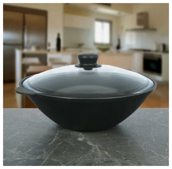 Вок (WOK) Камская посуда вок36 WOK 3,5л чугунная со стеклянной крышкой