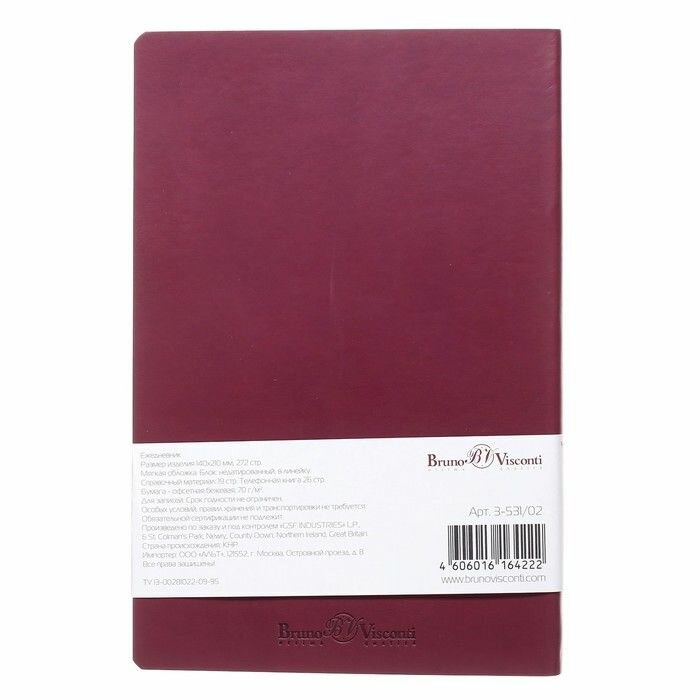Ежедневник недатированный Bruno Visconti А5, 136 листов, Megapolis Flex, бордовый интересное: