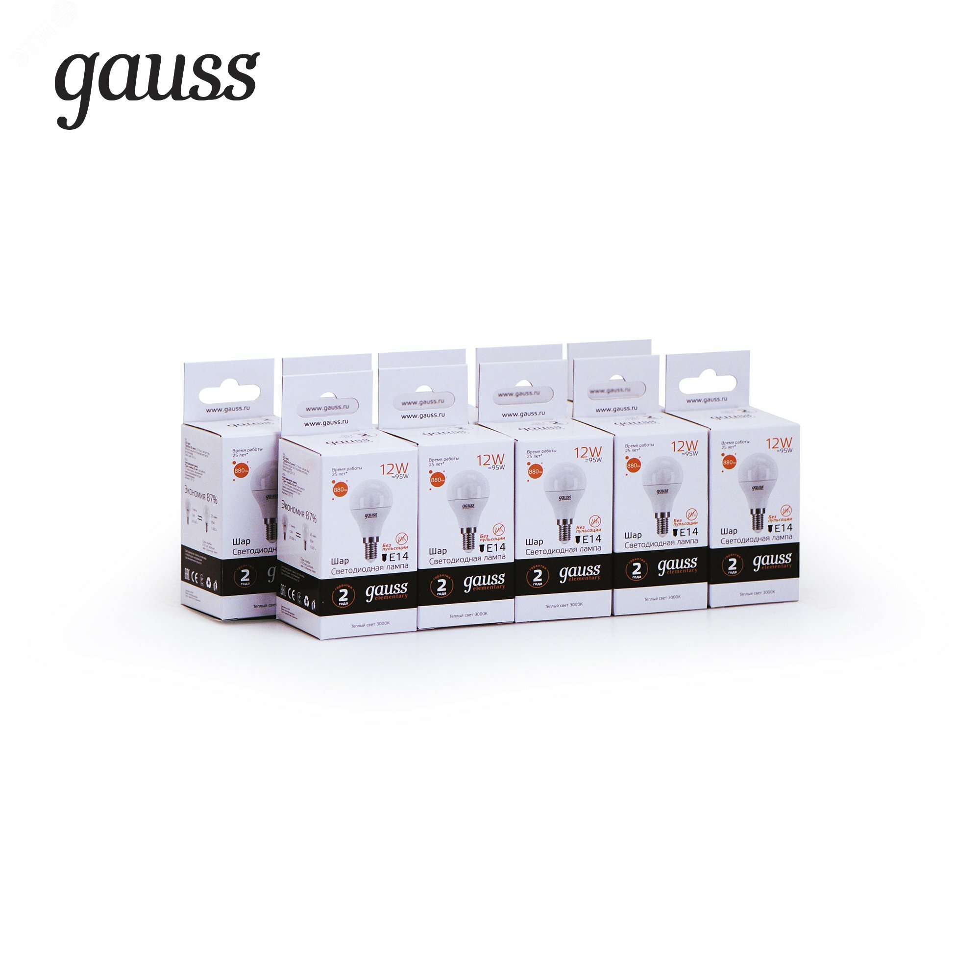 (5 шт)Лампа Gauss Elementary Шар 12W 880lm 3000K Е14 LED 1/10/100