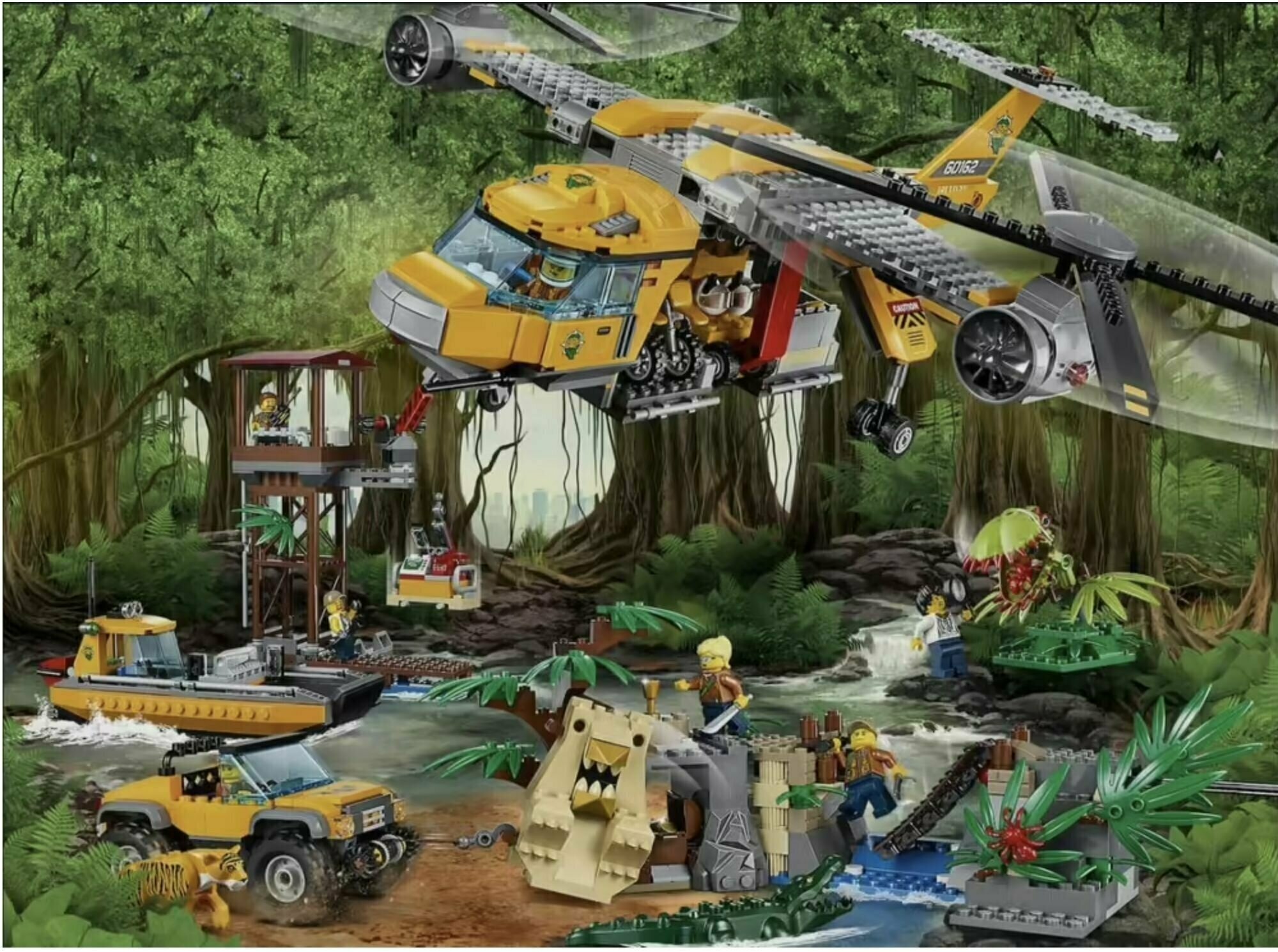 Купить Конструктор Сити Cities Город Вертолет для доставки грузов в джунгли 1298 деталей 10713