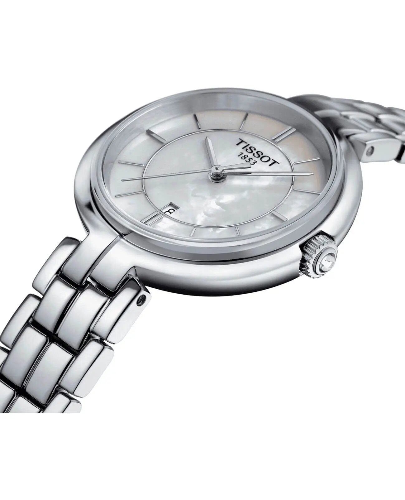 Швейцарские кварцевые часы Tissot Flamingo T094.210.11.111.00 на стальном браслете, с водозащитой 5 бар и международной гарантией от производителя