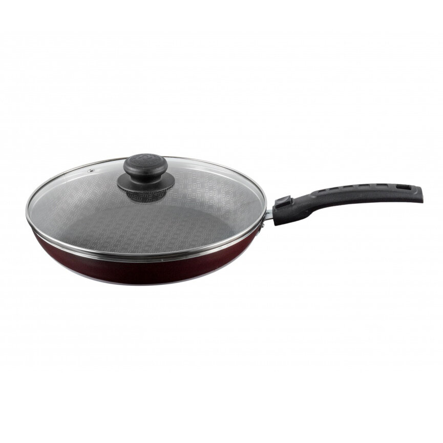 Сковорода "Хозяюшка", d=24 см, съёмная ручка, стеклянная крышка, антипригарное покрытие, цвет бордовый