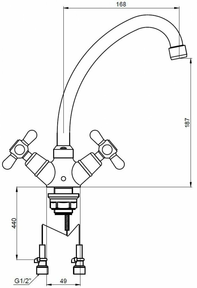 Смеситель для кухни двухвентильный KAISER Carlson Style 11143, цвет хром (с жесткой подводкой)