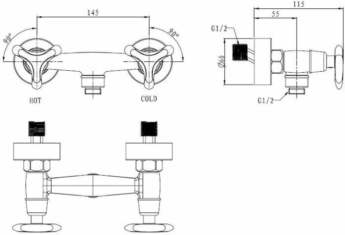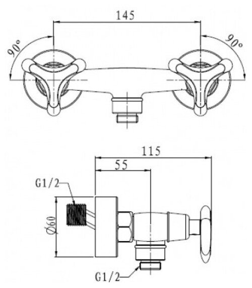 Смеситель для душа KAISER Trio - 57077 (двухвентильный, цвет хром)