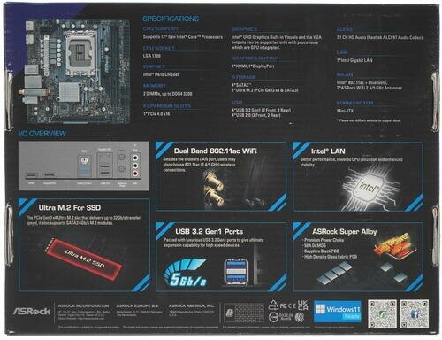 Материнская плата ASRock H610M-ITX/AC Socket 1700 H610 2xDDR4 1xPCI-E 16x 4xSATA III mini-ITX Retail