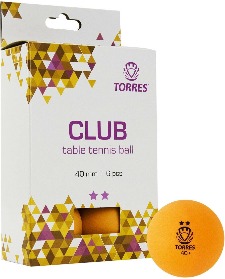 Мяч для настольного тенниса TORRES Club 2 набор 6шт. оранжевый spt0037012, 1691481