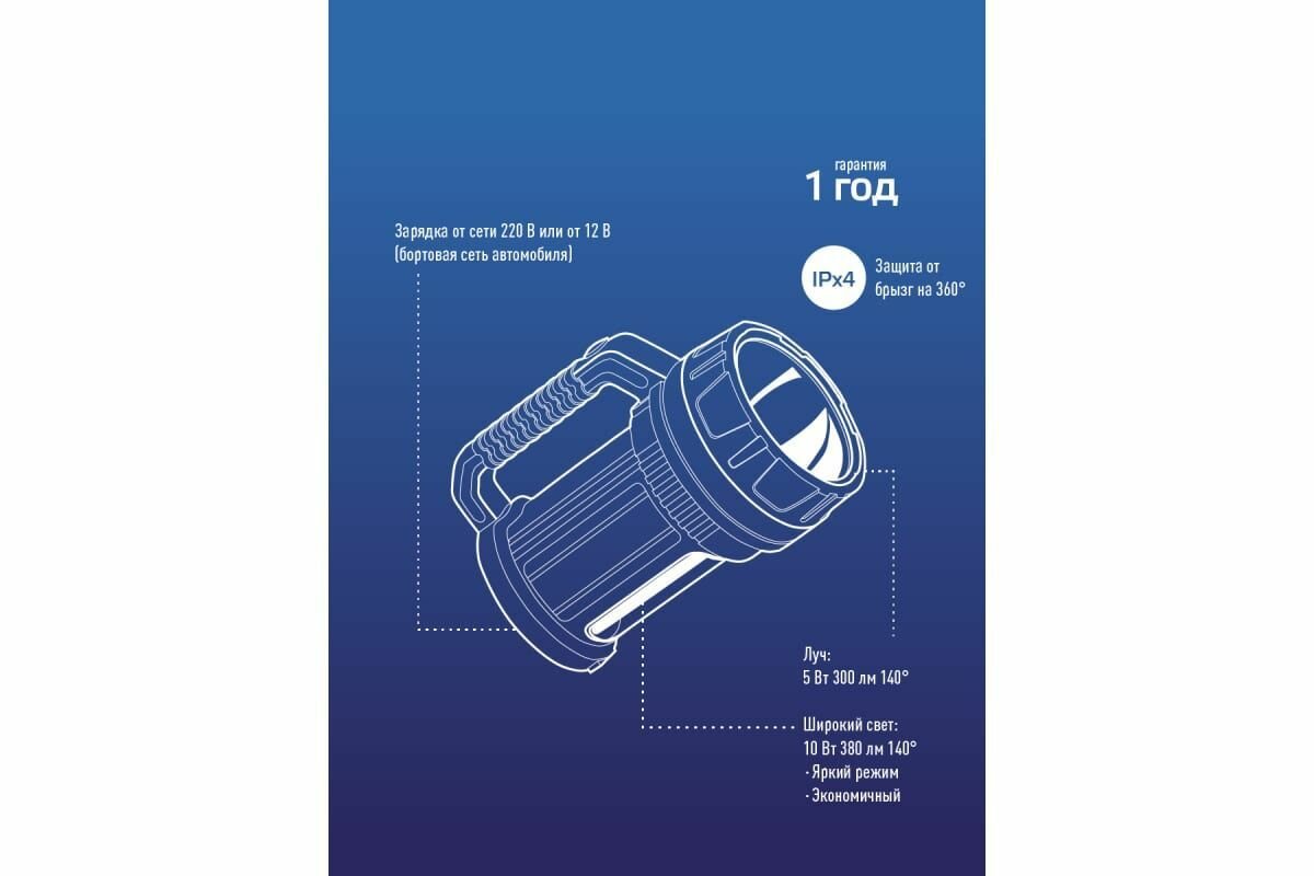 Фонарь светодиодный аккум. 5W LED 3 режима бок. панель 10Вт зарядное устройство 220/12В KOCAc2005W_Ex космос KOCAC2005W_EX (1 шт.)