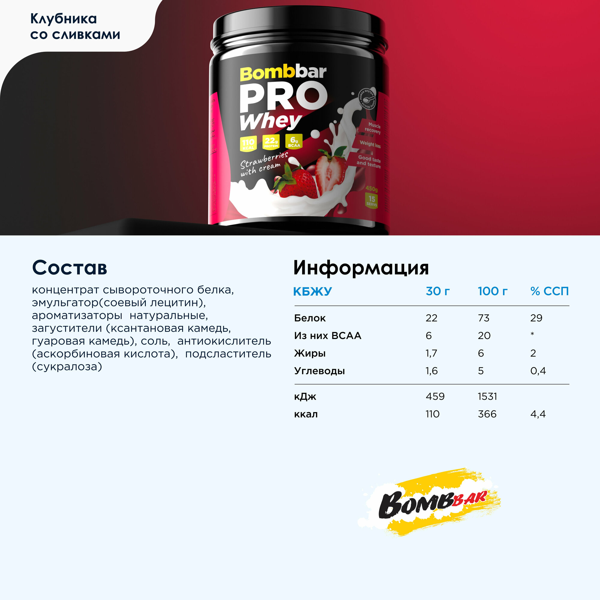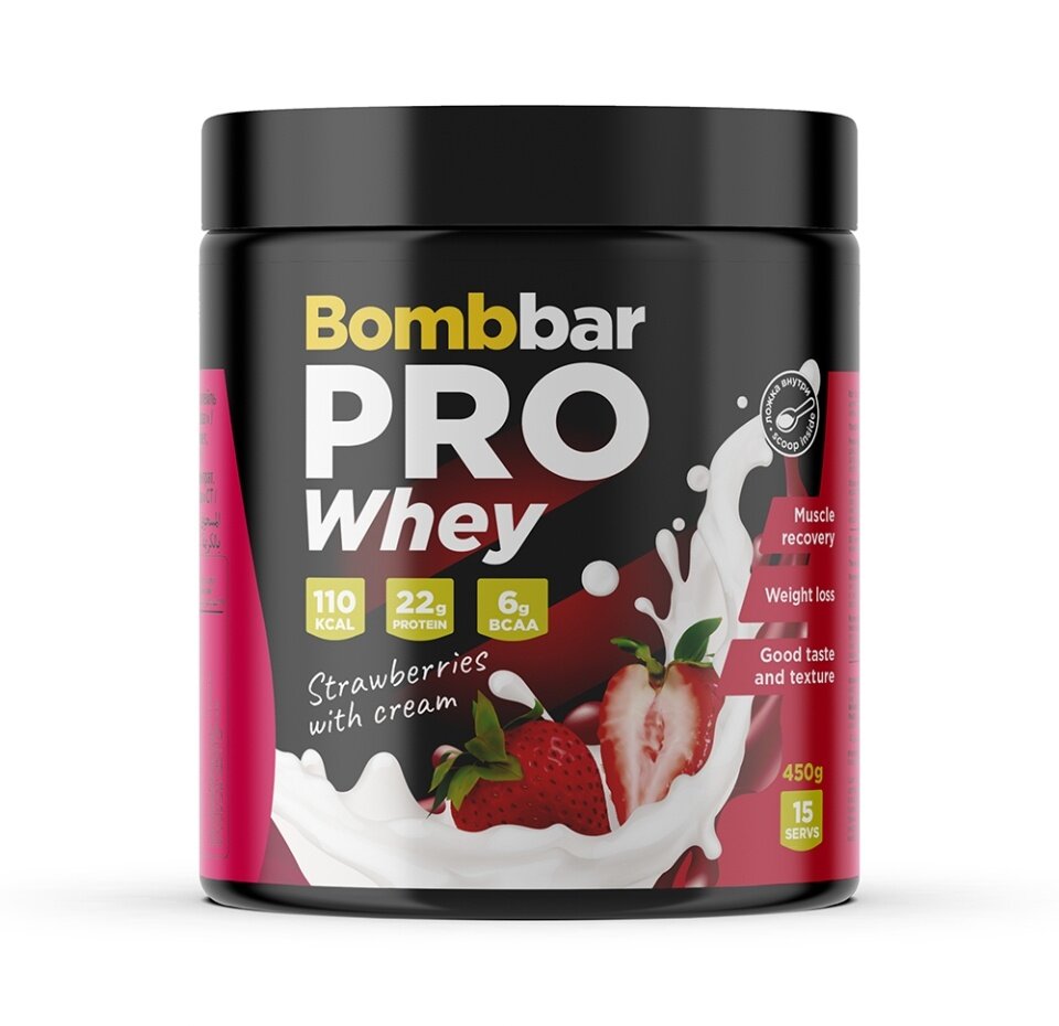 Bombbar Pro whey (450 гр) (клубника со сливками)