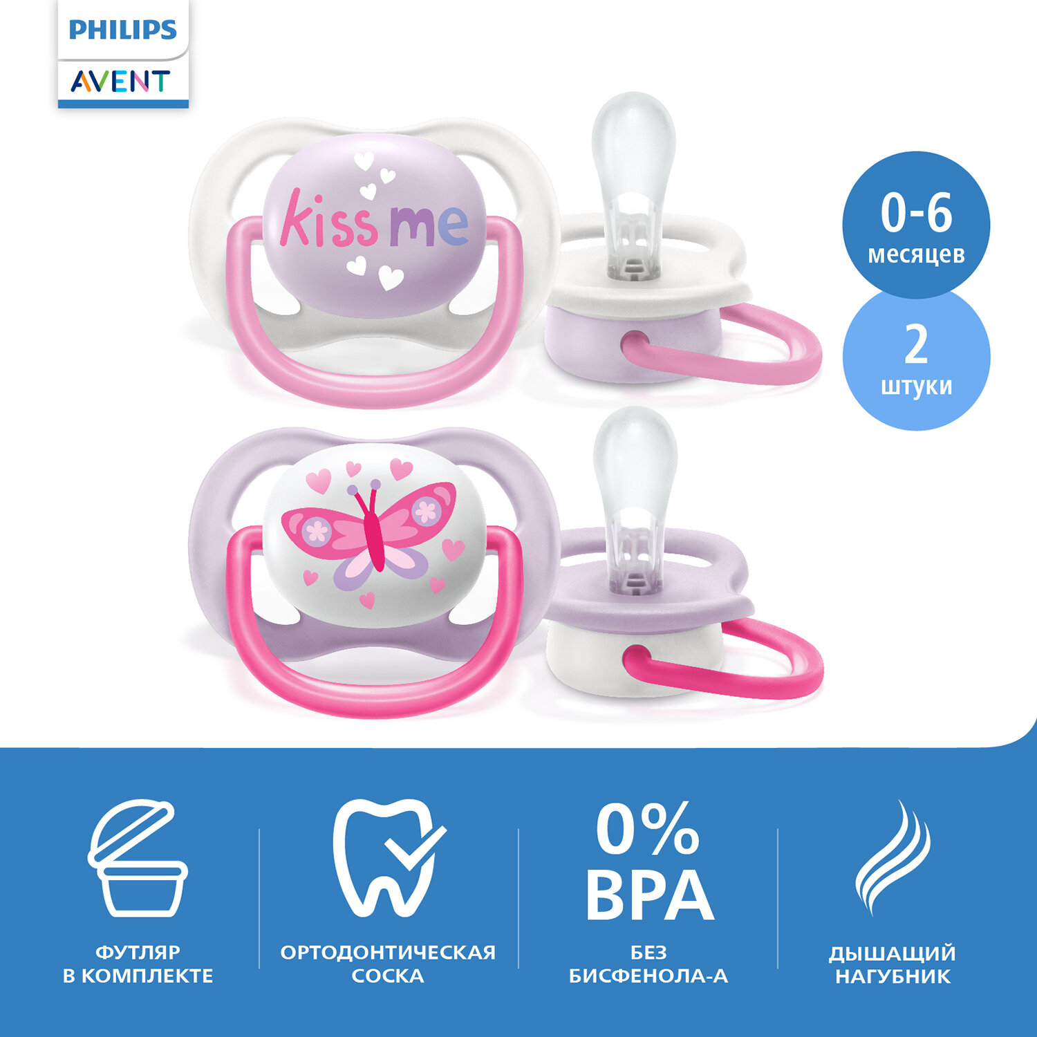 | Комплектация | 2 пустышки ultra air, футляр |