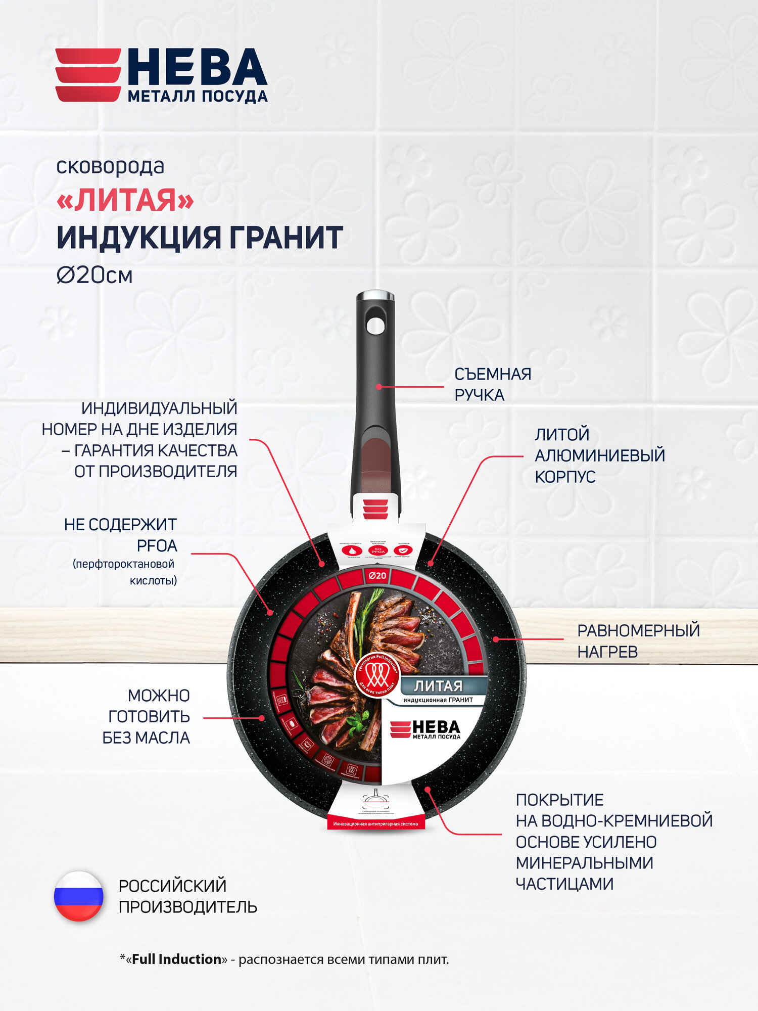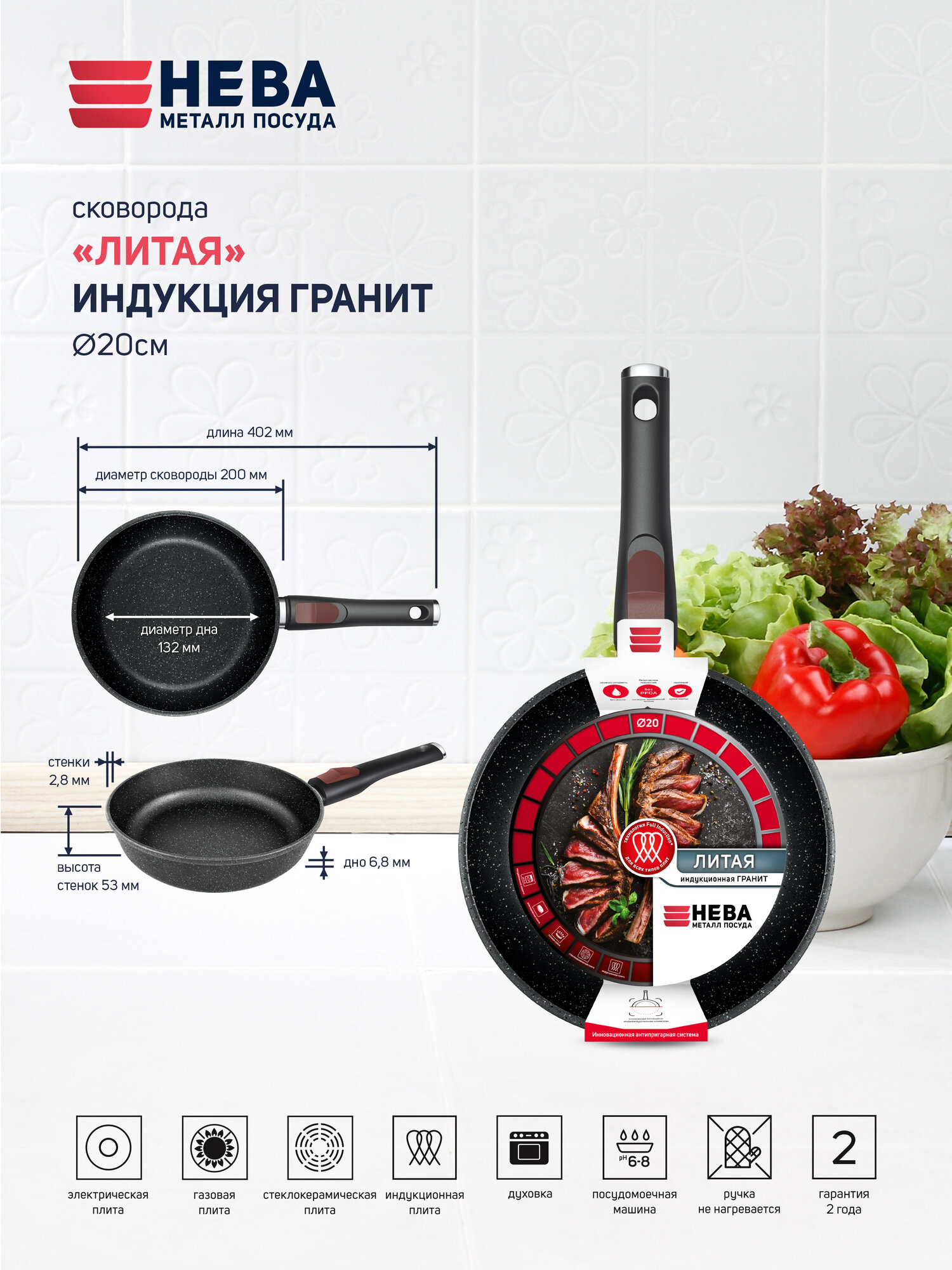 Сковорода Нева металл посуда Гранит, для индукции, диаметр: 20см