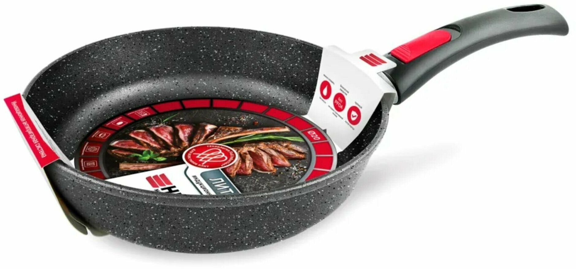Сковорода для индукционной плиты 24 см со съемной ручкой Нева Металл Посуда гранит L18024i, без крышки, литая, с толстым дном и с антипригарным покрытием