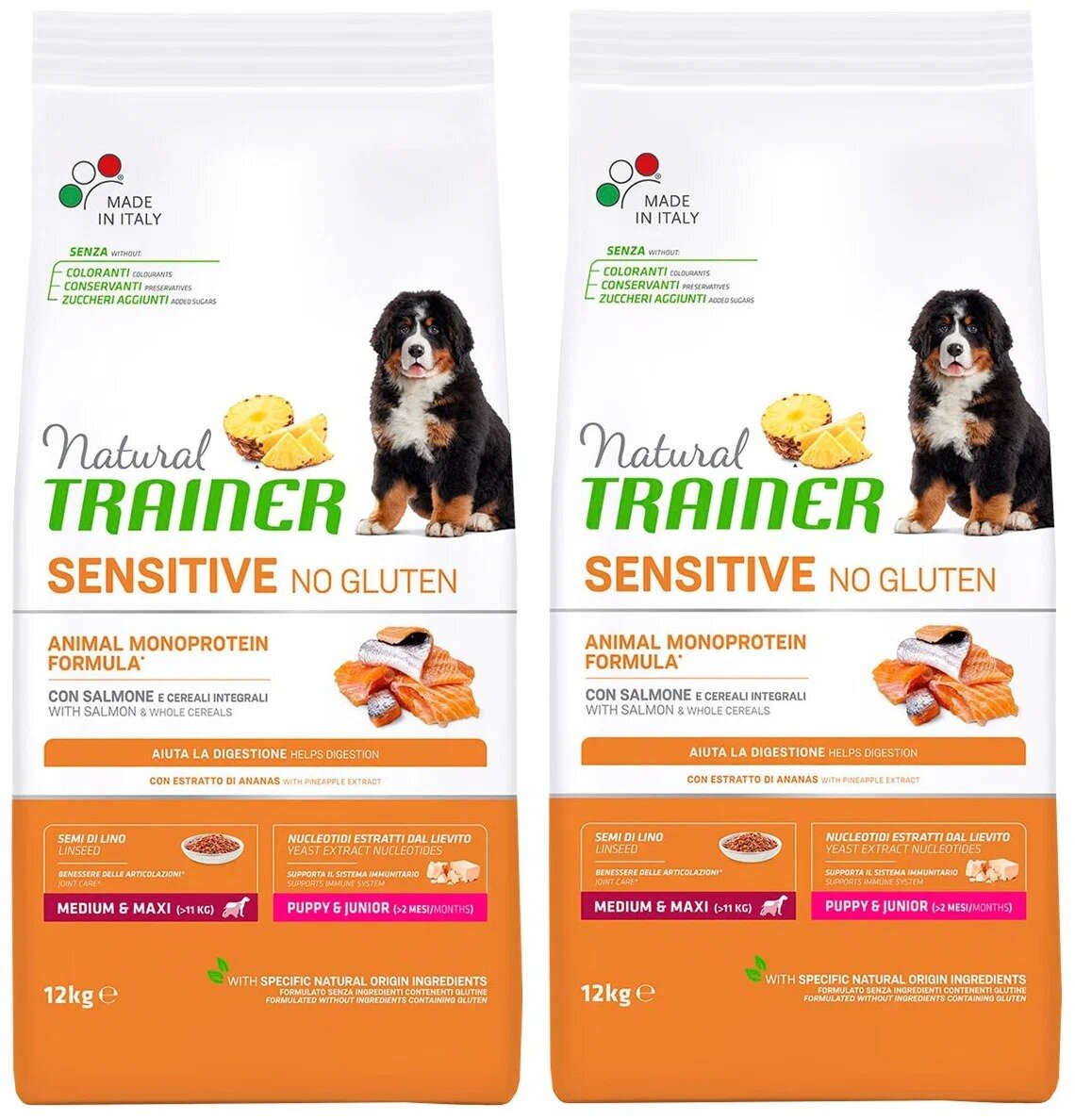 Сухой корм TRAINER NATURAL SENSITIVE NO GLUTEN MEDIUM & MAXI PUPPY & JUNIOR SALMON безглютеновый для щенков средних и крупных пород с лососем (12 кг)