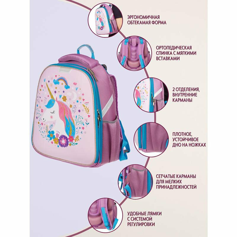 Рюкзак школьный Комус Basic Единорог, портфель анатомический для девочки, 2 отделения, 4 кармана