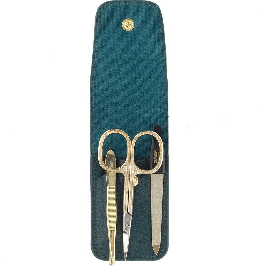 Маникюрный набор DEWAL серии "Современная классика" 3 предмета, футляр натуральная кожа, цвет зеленый (900GREEN)
