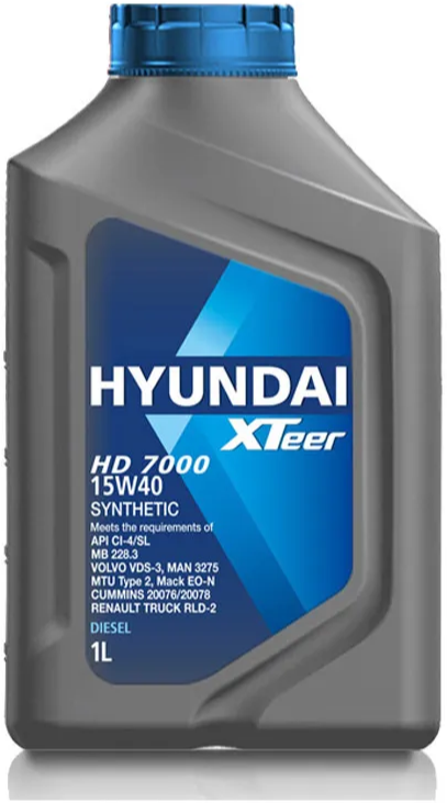 HYUNDAI XTeer HD 7000 15W40, 1 л API CI-4/SL, MB 228.3 MTU Cal.2, Volvo VDS-3 Mack EO-N, RenauB RLD-2 Cummins 20077, MAN 3275-1 SYNTHETIC, Моторное масло