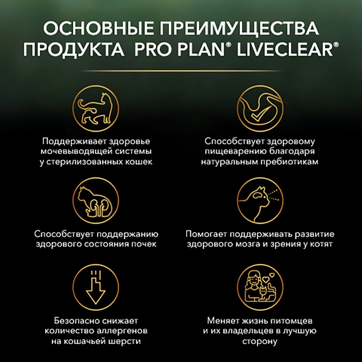 Сухой корм Pro Plan LiveClear для стерилизованных кошек, снижает количество аллергенов в шерсти, с индейкой, Пакет, 1,4 кг х 3 шт
