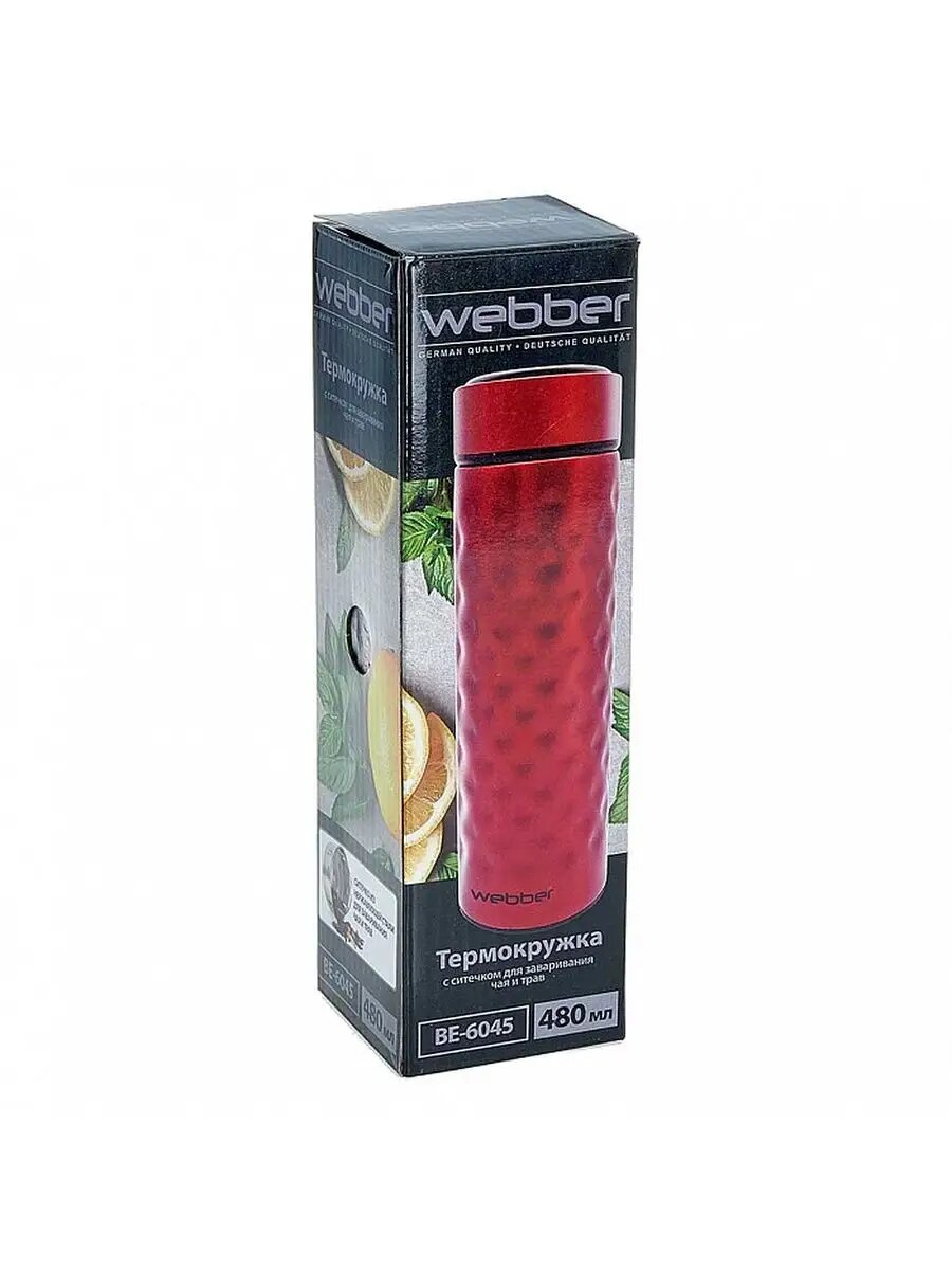 BE-6045 Термокружка с ситечком для чая Webber цв. красный 480мл