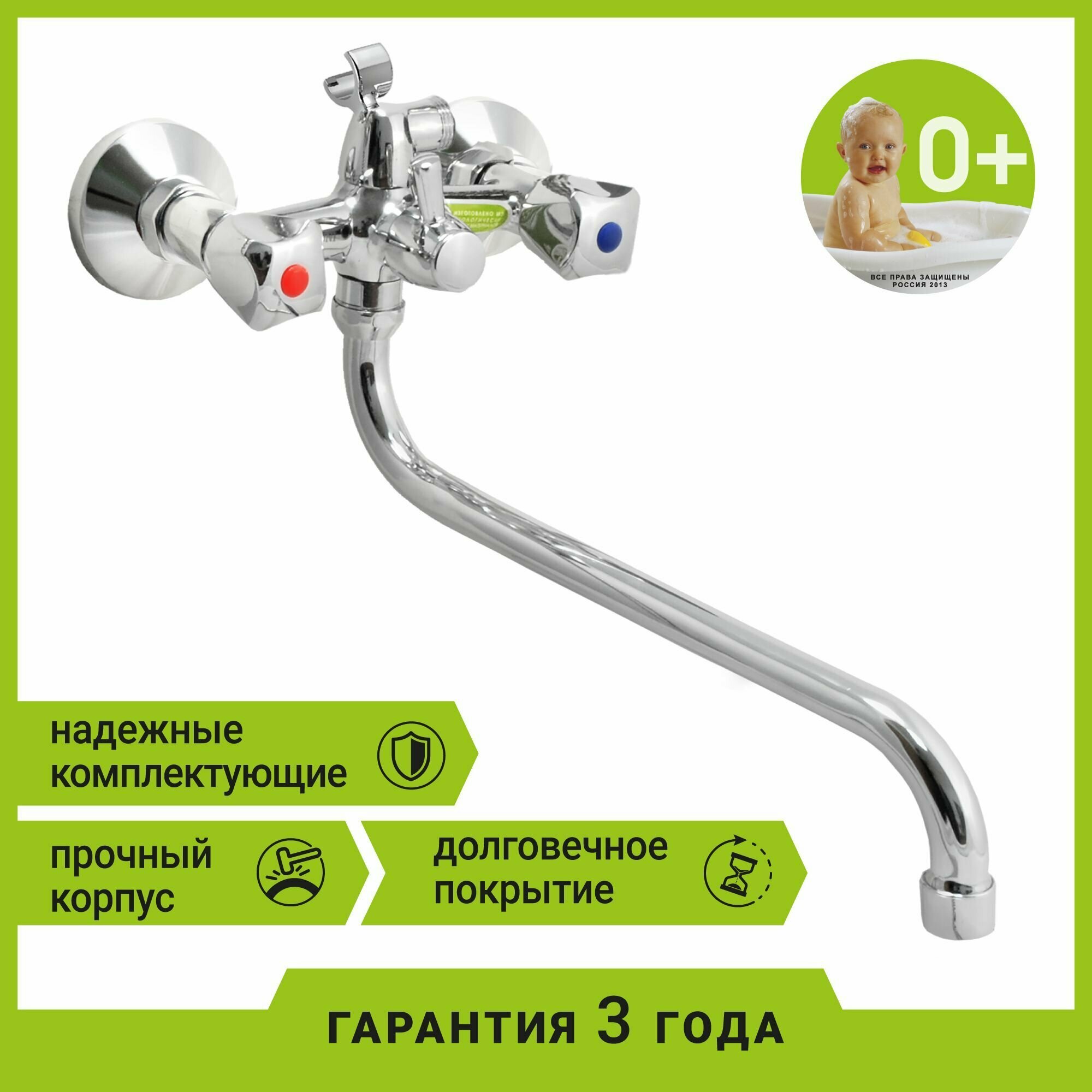 Juguni Смеситель для ванныс держателем для душа и дивертором, для раковины, длина излива 285 мм кран букса-керамическая. В комплекте эксцентрики, отражатели, без лейки и шланга, Арт.: 0402.687