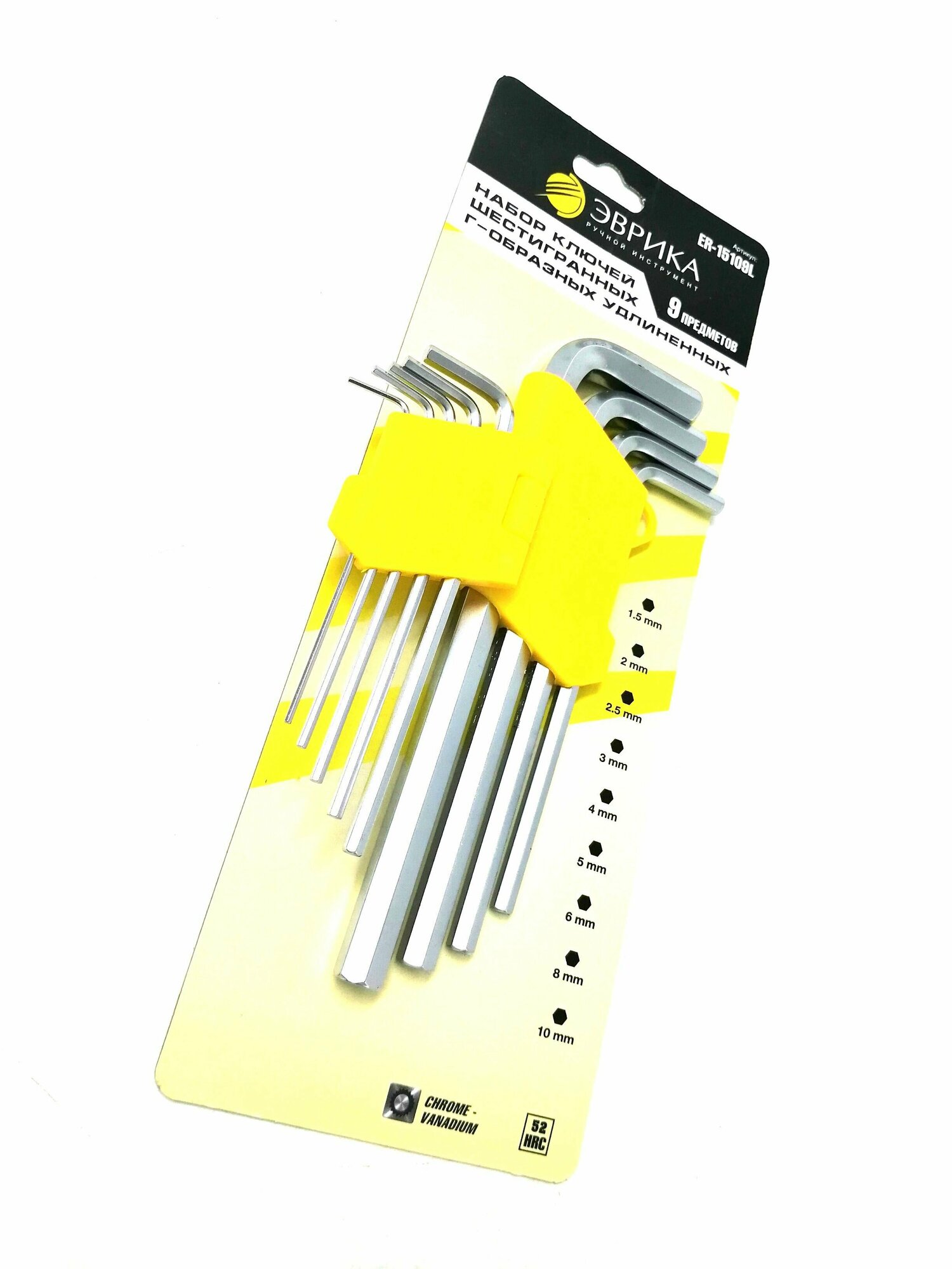 Набор ключей шестигранных 1.5-10мм Г-образных удлиненных 9 предметов эврика ER-15109L
