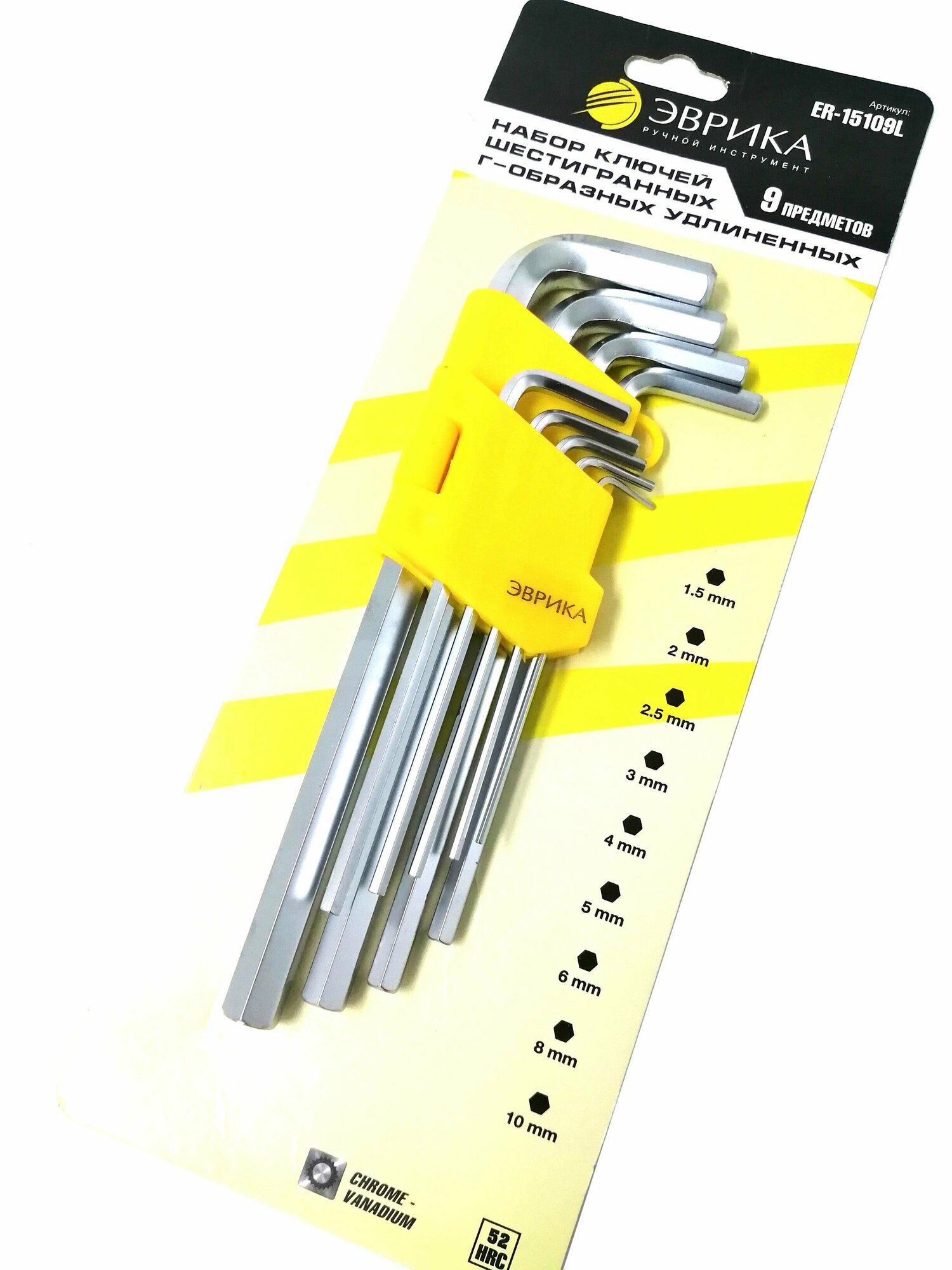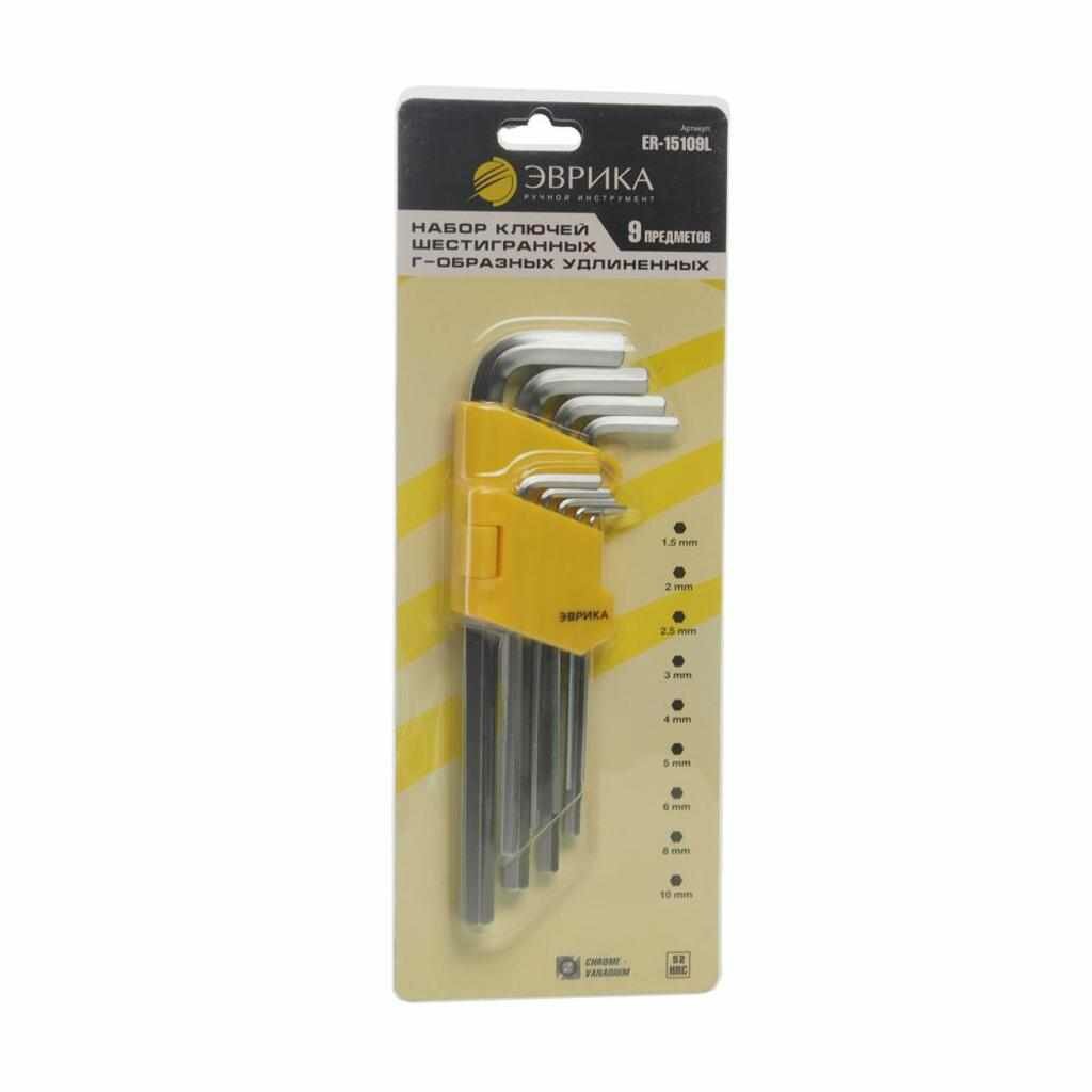 Купить Эврика ER-15109L Набор ключей шестигранных 1.5-10мм Г-образных удлиненных 9 предметов эврика